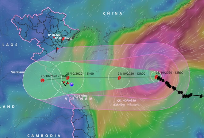 Trong 24 đến 48 giờ tiếp theo, bão di chuyển chủ yếu theo hướng Tây Tây Bắc, mỗi giờ đi được 20-25km. Đến 07 giờ ngày 28/10, vị trí tâm bão ở khoảng 14,5 độ Vĩ Bắc; 109,9 độ Kinh Đông, ngay trên vùng biển các tỉnh từ Đà Nẵng đến Phú Yên. Sức gió mạnh nhất vùng gần tâm bão mạnh cấp 12-13 (115-150km/giờ), giật cấp 15.