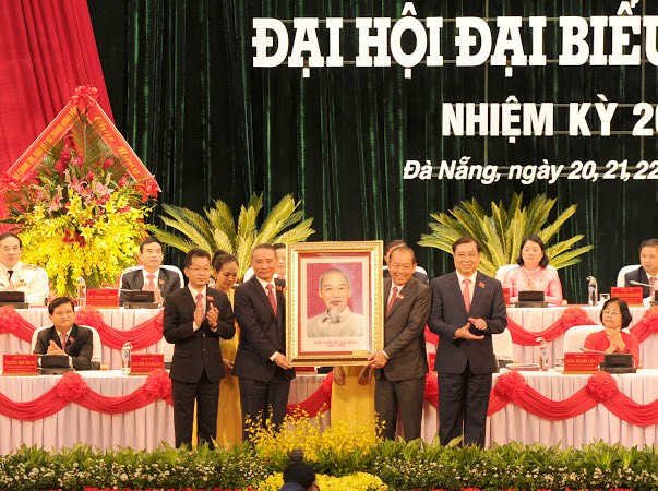 Phó Thủ tướng Thường trực Chính phủ Trương Hòa Bình trao tặng chân dung Hồ Chí Minh cho Đại hội Đảng bộ Tp. Đà Nẵng