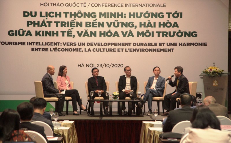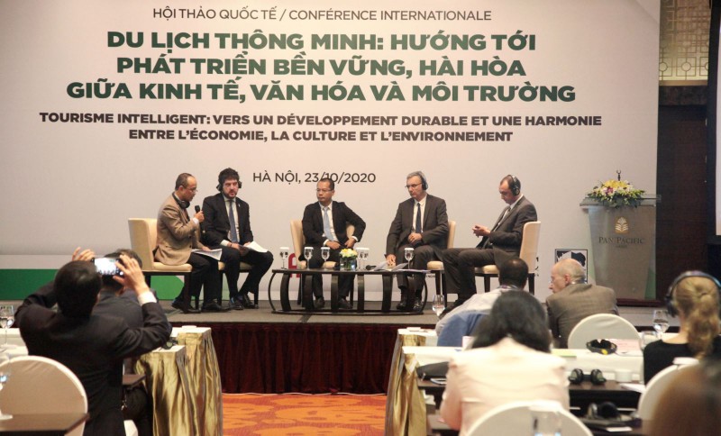 Ngày 23/10, tại Hà Nội diễn ra Hội thảo quốc tế “Du lịch thông minh hướng tới sự phát triển bền vững và hài hòa giữa kinh tế, văn hóa và môi trường”. Hội thảo do Bộ Ngoại giao phối hợp với Viện Quốc tế Pháp ngữ - Đại học Quốc gia Hà Nội (ĐHQGHN) và Tổ chức Quốc tế Pháp ngữ (OIF) tổ chức trong khuôn khổ Diễn đàn quốc tế Franconomics lần thứ II-2020. Phó Tổng cục trưởng TCDL Nguyễn Lê Phúc dự và phát biểu tại hội thảo.