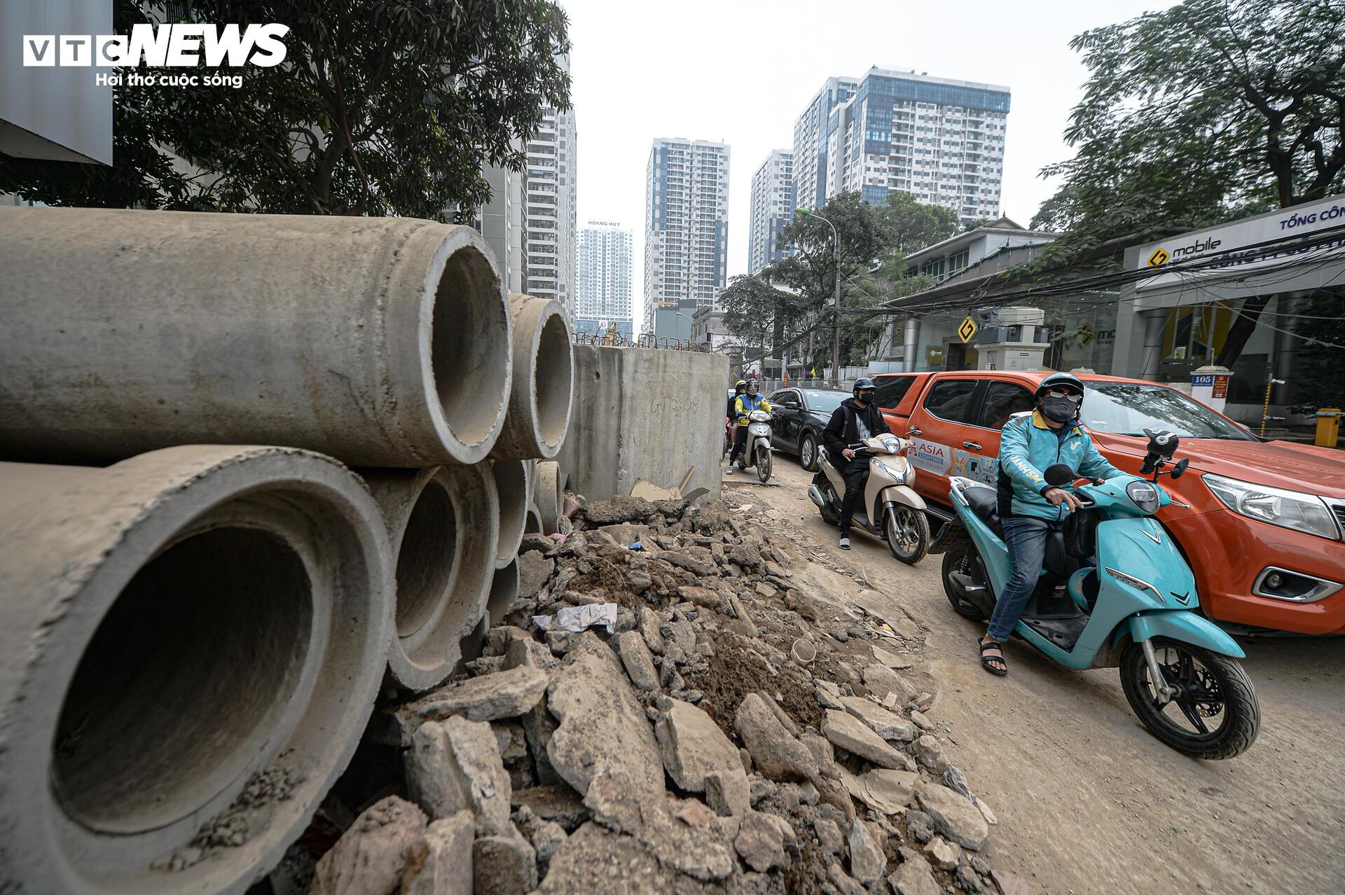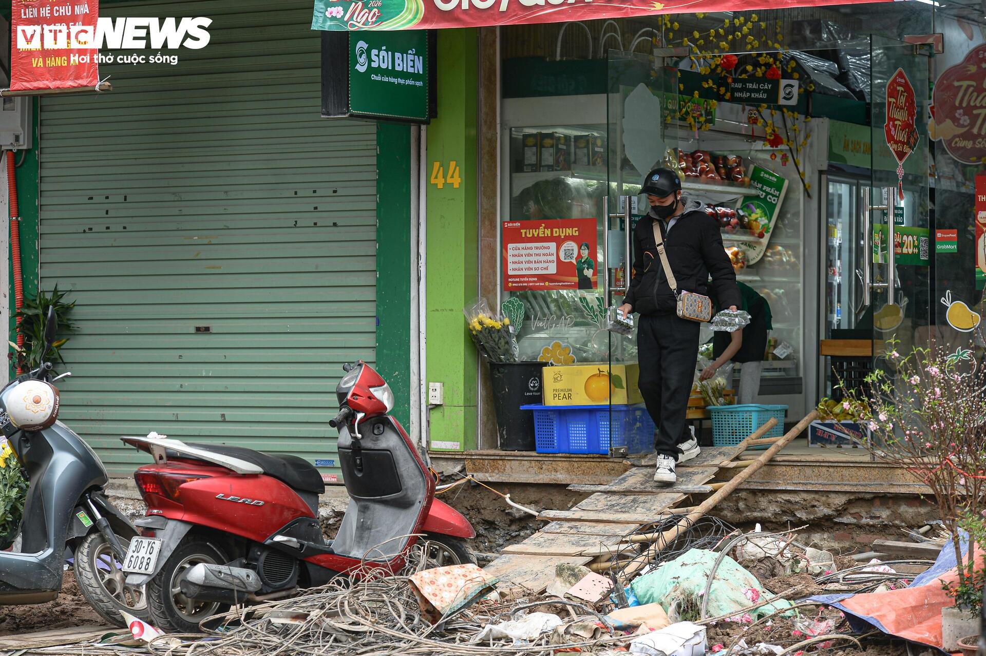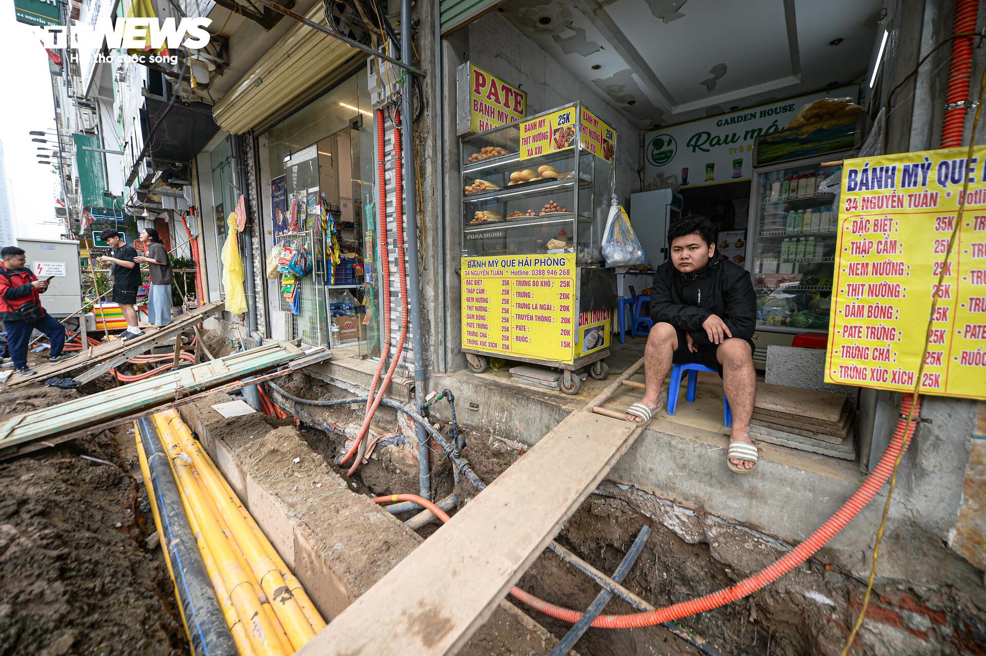 Bà Mai, chủ một cửa hàng bán quần áo trên phố Nguyễn Tuân, cho biết gần 10 ngày nay lượng khách giảm rõ rệt. “Phía trước cửa đang đào hệ thống thoát nước, khách đến không có chỗ gửi xe. Nhiều người quay xe đi luôn. Gần Tết, doanh thu sụt giảm khiến chúng tôi rất lo”, bà Hằng chia sẻ.