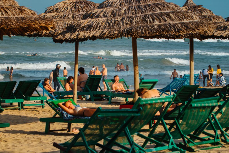 Du khách trải nghiệm tại bãi biển Mỹ Khê