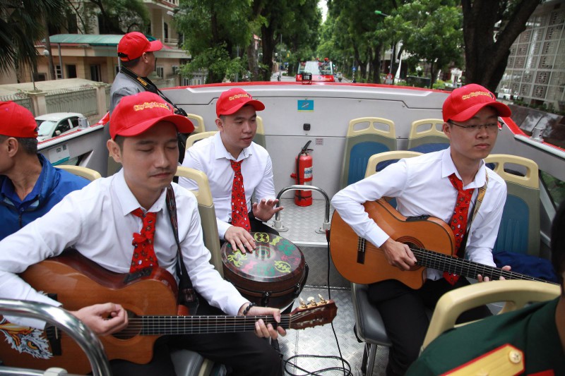 Biểu diễn âm nhạc phục vụ khách du lịch trên xe